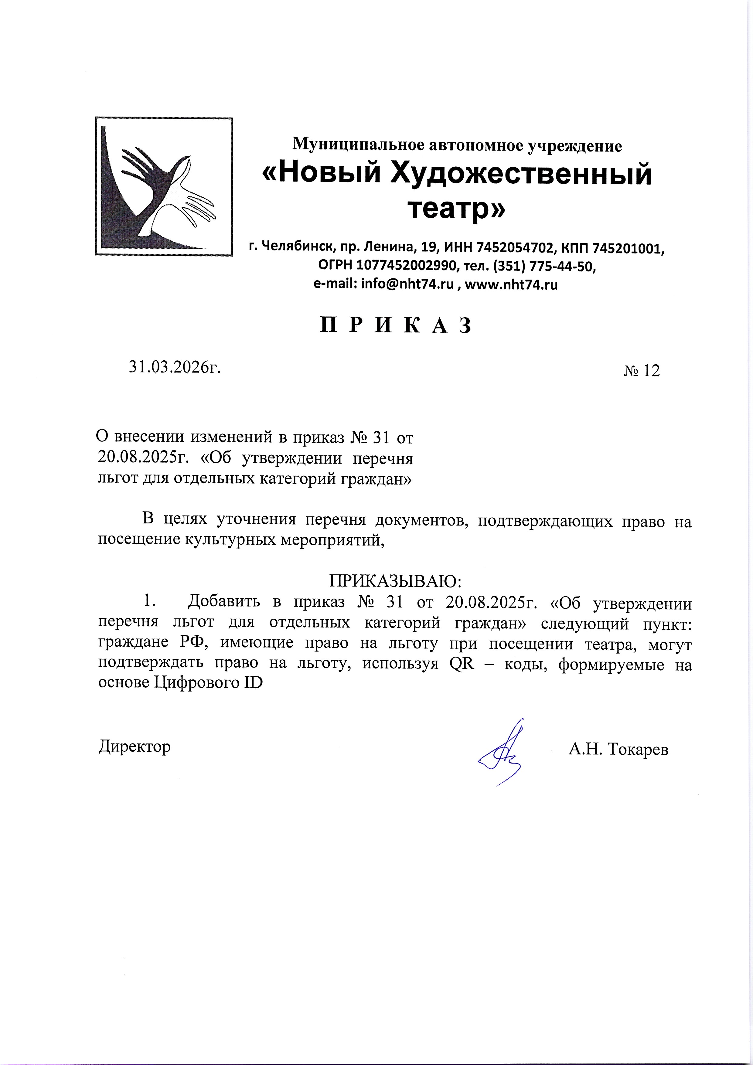 О внесении изменений в приказ «Об утверждении перечня льгот для отдельных категорий граждан»